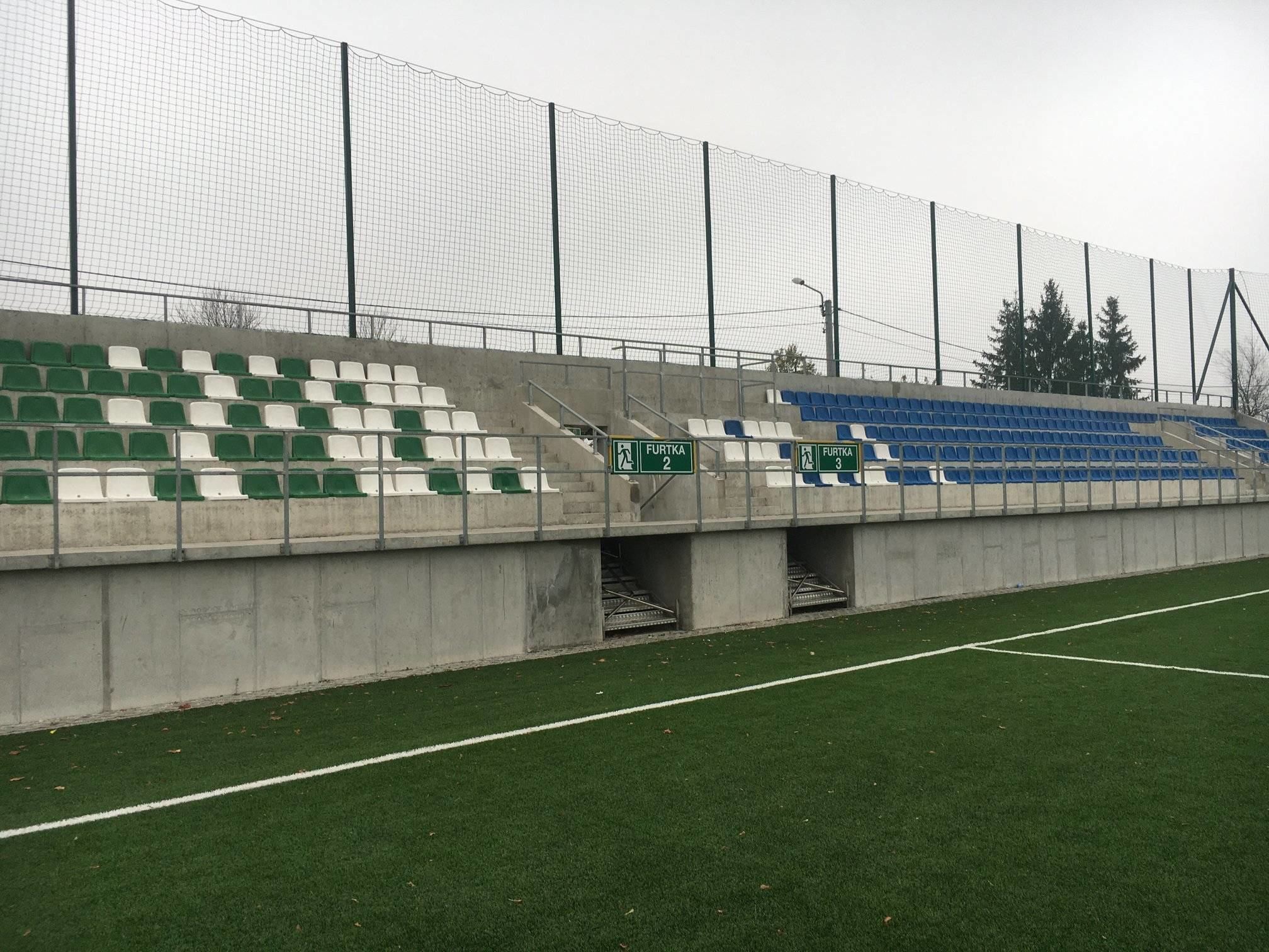 boisko sztuczne 117,6m x 74 m – 566 miejsc,
